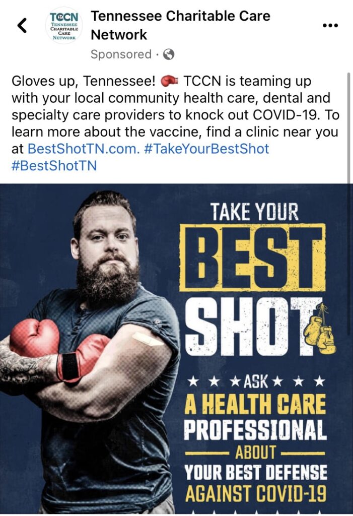 My wife recently received an ad on her Facebook feed called “Take your best shot,” promoting the COVID-19 mRNA shot. Normally, we would just scroll on by. But this ad was sponsored by the Tennessee Charitable Care Network, and frankly, that name was curious.